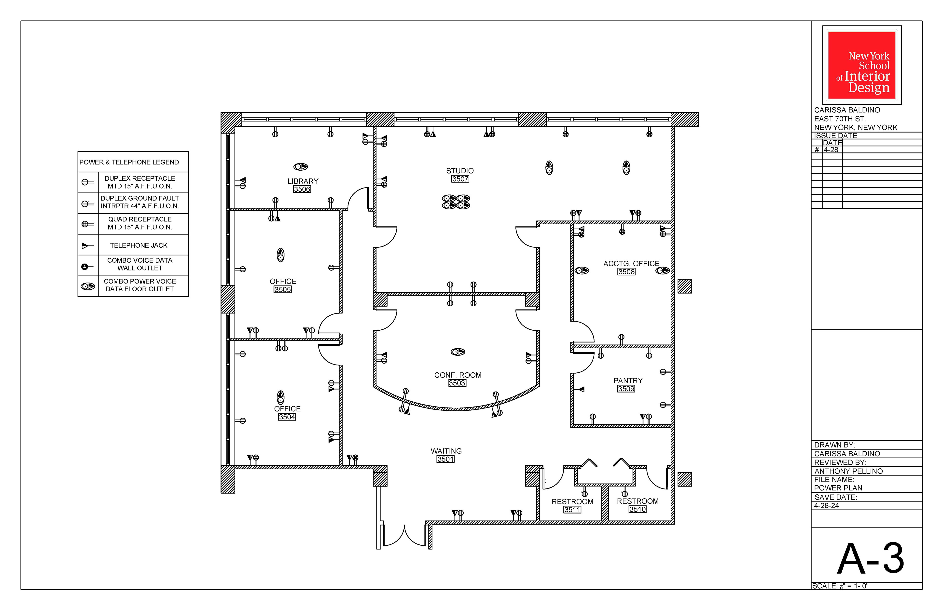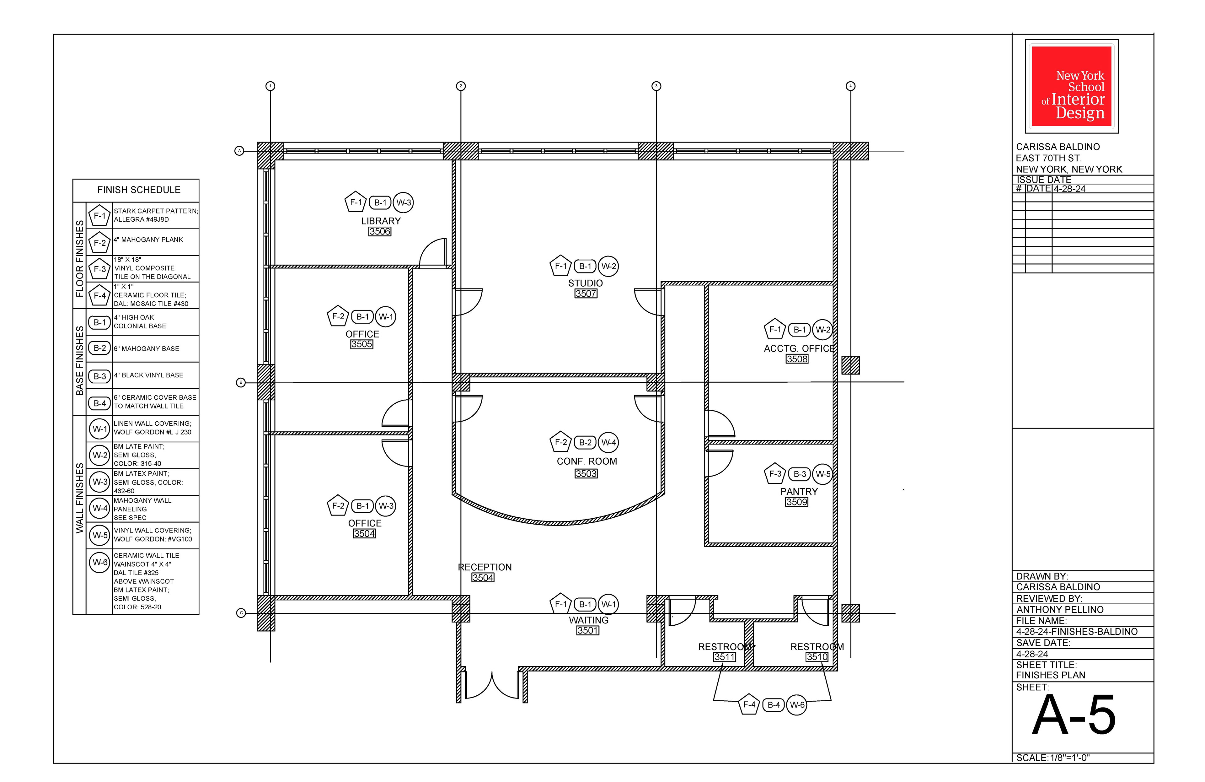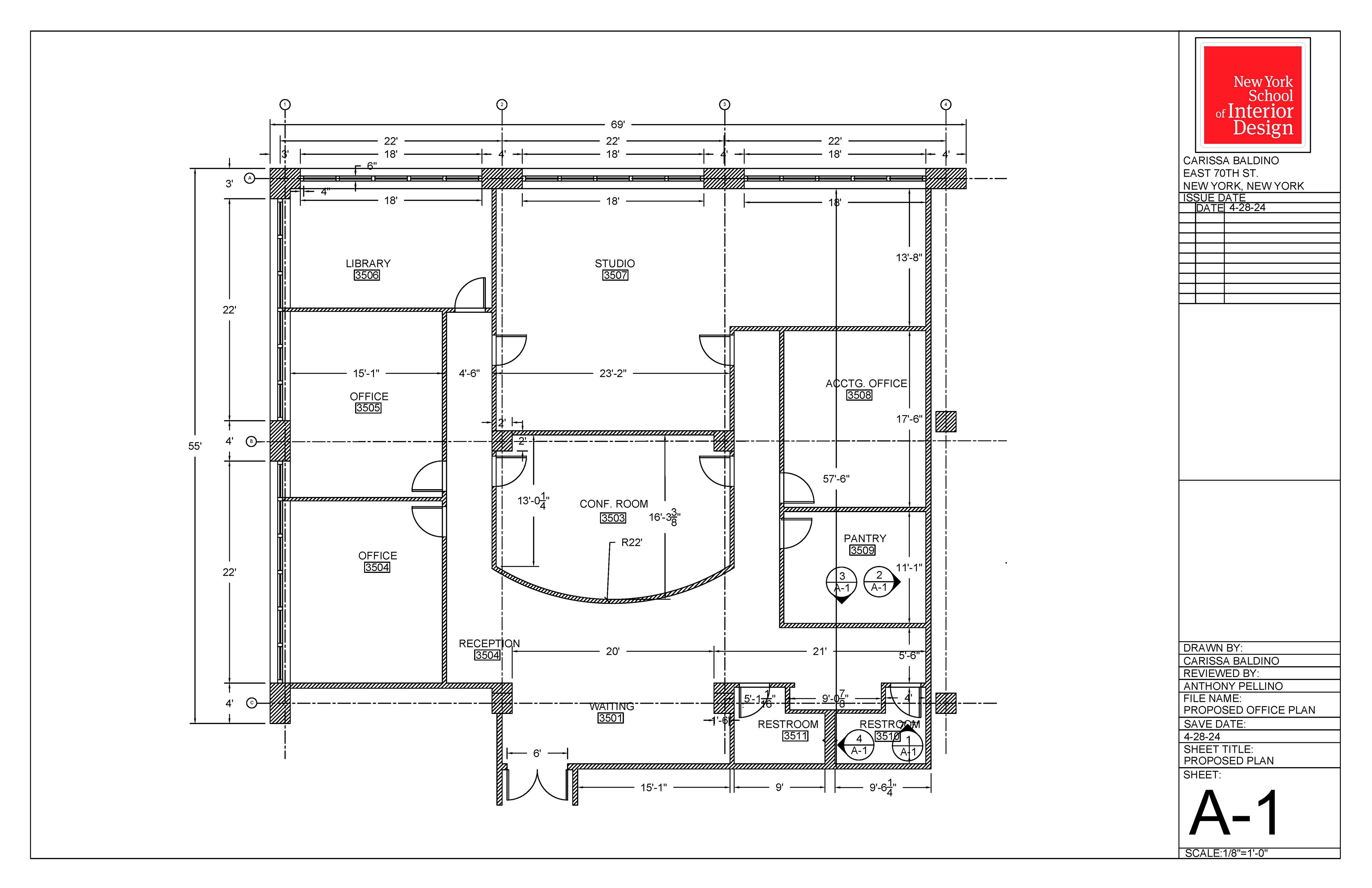 These design documents outline plans for an office.